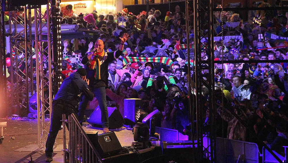 Met een mooi rond podium midden op de Markt was er dit jaar zelfs wat meer ruimte op het plein, zodat er - ruwe schatting - zo'n 11.000 mensen konden meedeinen tijdens de optredens van een 40-tal artiesten. De sfeer was er zoals elk jaar weergaloos, hartverwarmend, bijna magisch. Ondanks het kille weer veranderde de Sittardse Markt dan ook weer in een lekker warm Vastelaovesbad.