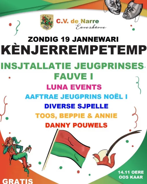 Carnavalsvereniging De Narre Euverhaove organiseert zondagmiddag weer haar traditionele Kènjerrempetemp in Oos Kaar.