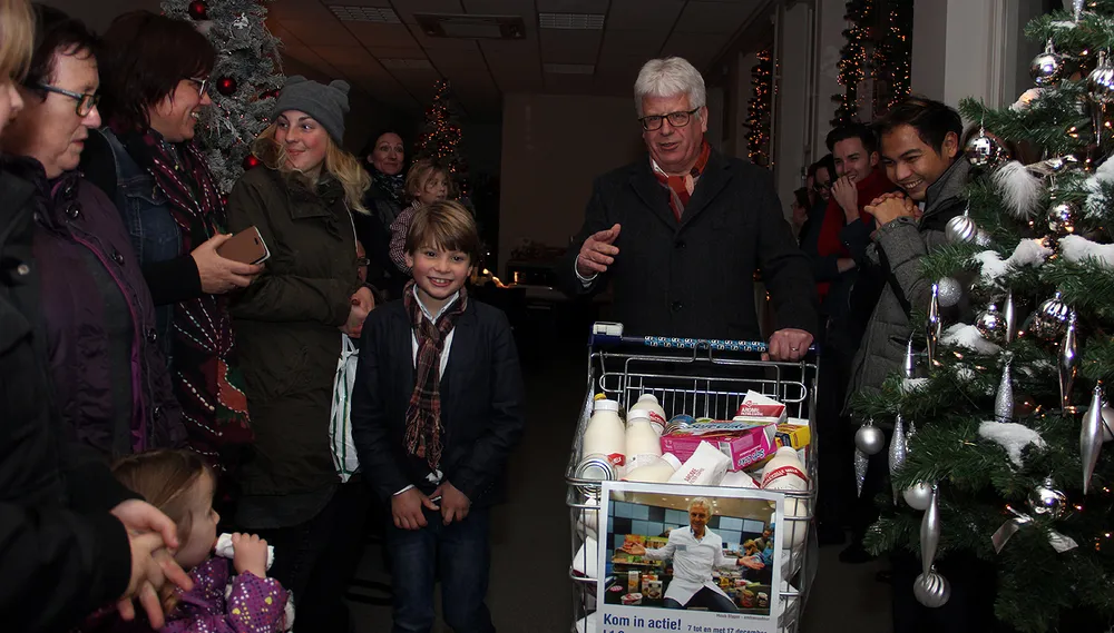 Even na 19:00 uur presenteerde burgemeester Sjraar Cox samen met de 8-jarige Olivier een afgeladen winkelwagen aan de Kerstman. Olivier had de inhoud van de winkelwagen helemaal zelf verzameld voor de Voedselbank, "gewoon omdat iedereen te eten moet hebben".