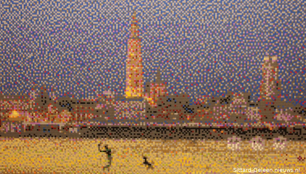 Behalve hoofden van LEGO zijn er ook schilderijen van LEGO te zien, waaronder een vergezicht op Antwerpen.