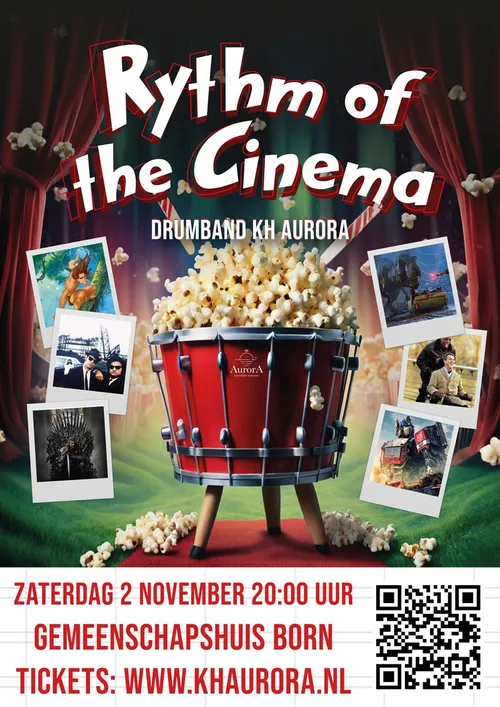 Om dit te vieren voert de drumband van Aurora op zaterdag 2 november een spectaculair themaconcert uit met de titel Rhythm of the Cinema.