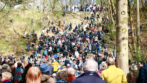 Vanmiddag vond op de Kollenberg weer het jaarlijkse Krombroodrapen plaats. De broodjes werden vanochtend gezegend tijdens een Heilige Mis in de Sint Michielskerk. Om 13:45 uur vertrok een korte optocht met de krombroodjes en de krombroodwerpers vanaf het Kloosterplein richting Kogelvanger op de Kollenberg. Daar had zich weer massa mensen verzameld om te zien hoe de kinderen tegen de steile helling opklommen om de uitgeworpen krombroodjes te kunnen vangen.