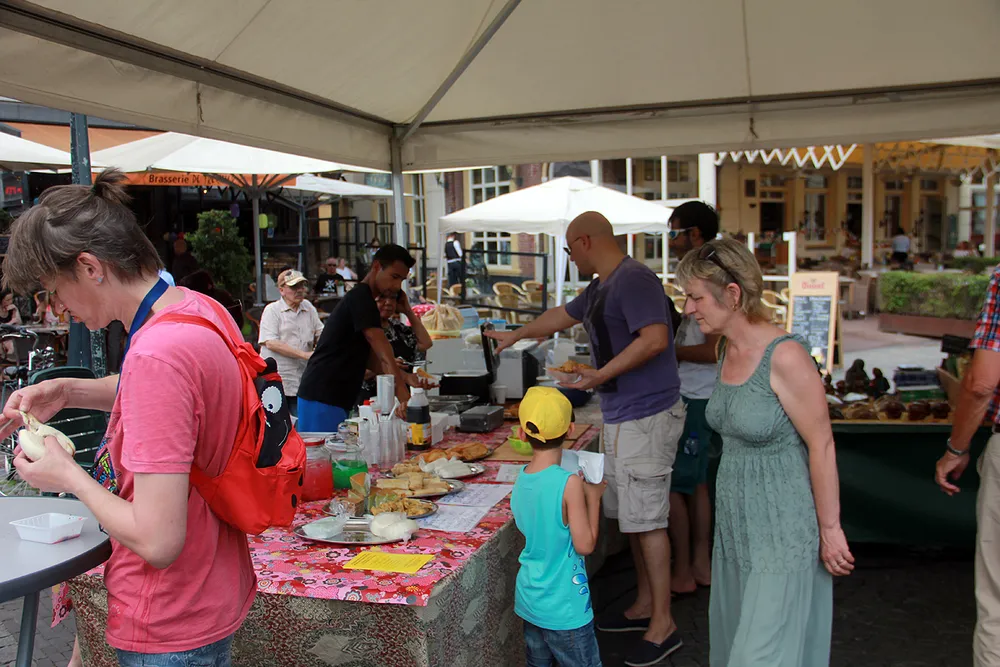 Zondagmiddag om 14:00 uur opende wethouder Bert Kamphuis solidariteitsfestival Musada op de Markt in Sittard.