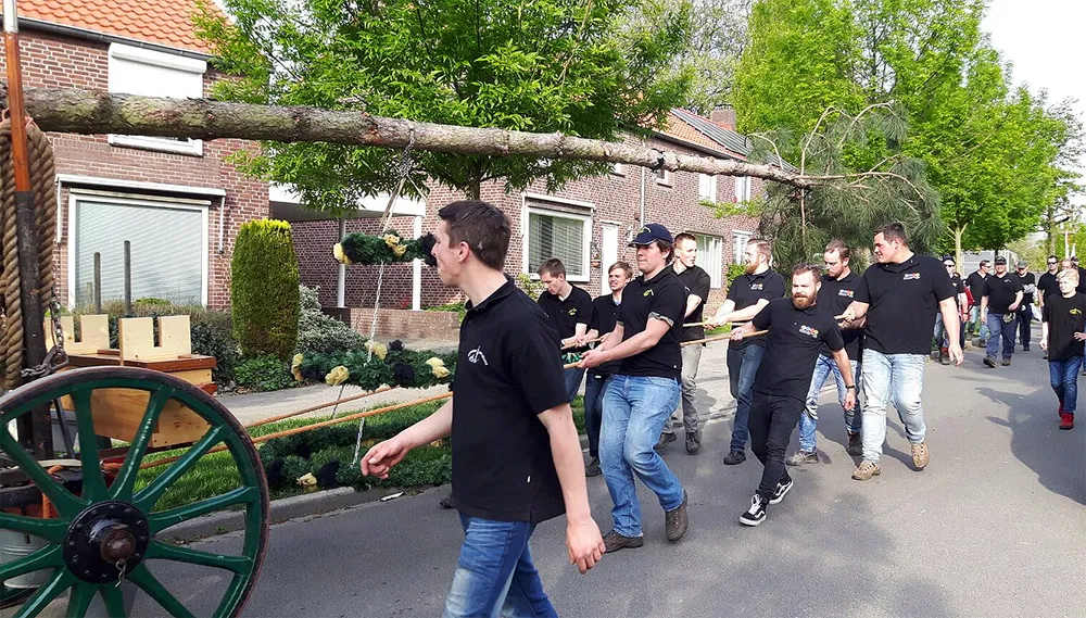 Zaterdagavond 11 mei trokken de leden van Jonkheid St. Isidorus weer met een vers gekapte mei-den door Oud-Geleen.
