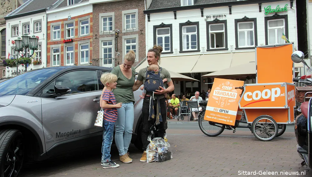Het Sittardse Centrummanagement had uit tientallen inzendingen waarin kinderen motiveerden waarom hun papa de stoerste van allemaal was er 10 gekozen. Alle trotse vaders ontvingen een mooi geschenkenpakket, dat werd aangeboden door de onlangs in Ligne geopende vestiging van COOP. Verder werd uit de tien geselecteerde vaders er eentje middels een willekeurige trekking aangewezen als degene die zich een jaar lang Stoerste papa van Sittard mag noemen. Die eer viel te beurt aan Nils Valkenborgh. Als extra prijs mag hij met zijn gezin een weekendje erop uit met een fraaie nieuwe Toyota, beschikbaar gesteld door Auto Mengelers.