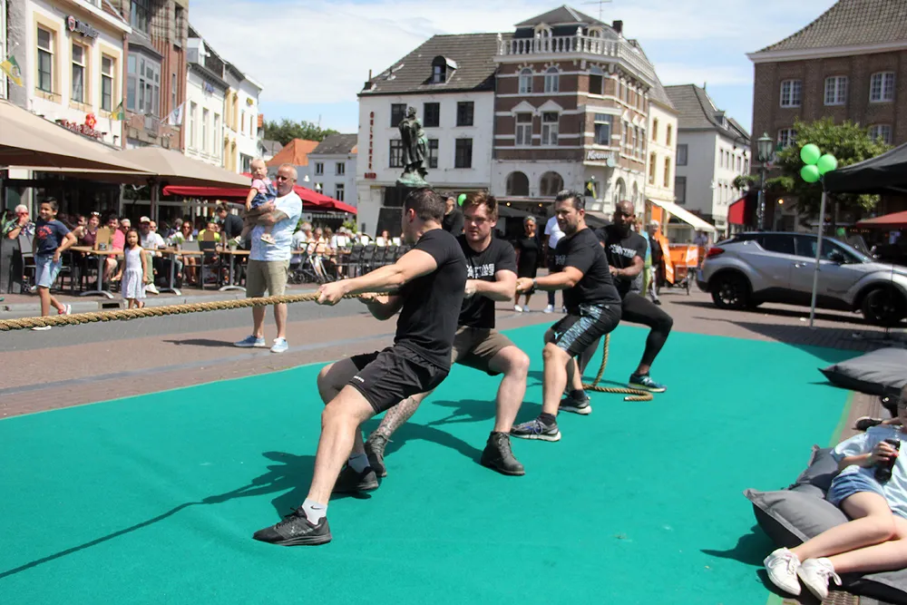 De historische Markt was veranderd in een groot strijdtoneel waar touwtrekteams streden om de titel 'Sterkste Team van Sittard', waar een vuurvreter vuur spuwde én vrat en waar gratis lekkere hamburgers werden weggegeven. Op diverse plekken in de stad was er live muziek. Het sterkste team van Sittard werd team 2 van Anytime Fitness, dan in de finale het viertal van team 'Lief klein en onschuldig' versloeg.