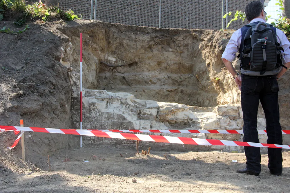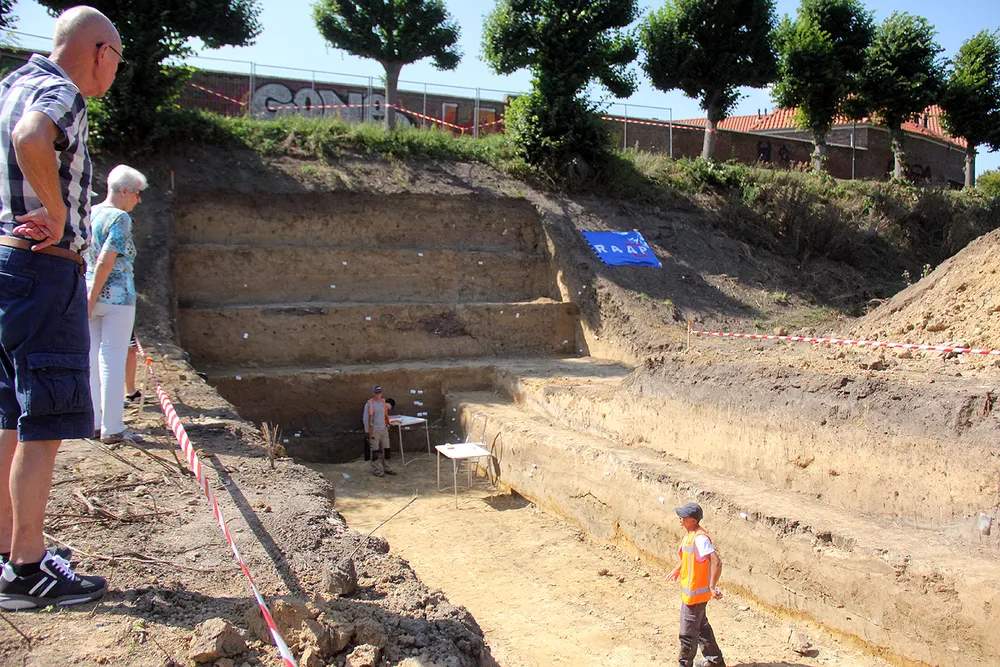 Verderop werd een brede en diepe sleuf gegraven om de loop van de stadsgrachten te bepalen. Lees verder onder de foto.
