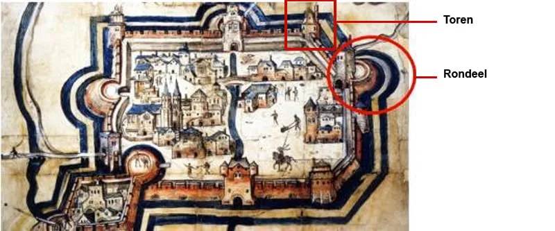Qua locatie is de toren te linken aan het bekende middeleeuwse kaartje van de stad, waarop ook het rondeel is te zien. Het kaartje roept op zich nogal wat vragen op, maar een aantal eerdere opgravingen – onder meer bij het aanleggen van de duikerbrug op de Deken Tijssenstraat bij de voet van de Dominicanenwal en de Begijnenhofwal, en de ontdekking van vanochtend van de resten van wat vermoedelijk een toren is geweest, doet de onzekerheid over het middeleeuwse plattegrondje afnemen. “Het oude kaartje zou natuurlijk ook een tekening kunnen zijn geweest om aan te geven hoe de verdedigingswerken van de stad eruit zouden komen te zien”, oppert een van de aanwezige gidsen.