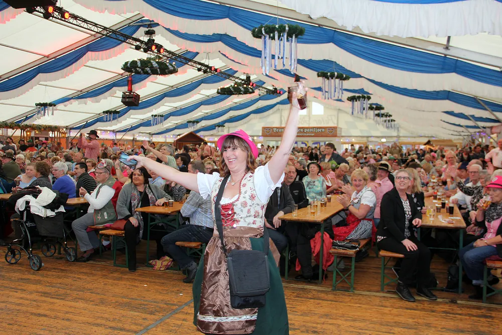 De feestelijke maandagmiddag van het Oktoberfeest werd geopend door Miss Oktoberfeest Elise Schreuders en wethouder Noël Lebens van cultuur en werd zoals gewoonlijk weer gepresenteerd door Nicole en Ingrid. Behalve Frans Theunisz werkten ook Beppie Kraft, Erwin, die Spatzl, Ruud Appelhof en Tirol Sound mee aan een van de leukste onderdelen van het Oktoberfeest. En allemaal genoten ze van de sfeer en het publiek.