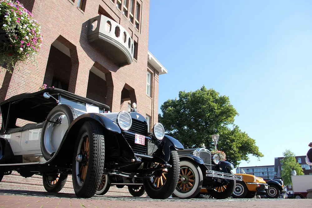 Even na 10:00 uur vertrokken de deelnemers aan de Oldtimerparade onder in alle opzichten voortreffelijke weersomstandigheden voor een stijlvolle toertocht door het Limburgse land. In de loop van de middag keren ze dan weer terug op de Markt in Geleen.