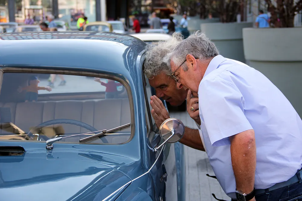Mooi om te zien hoe vooral volwassen kerels naar de opgestelde voertuigen kijken en hoe ze het interieur inspecteren. Oude auto's: ze blijven boeien!