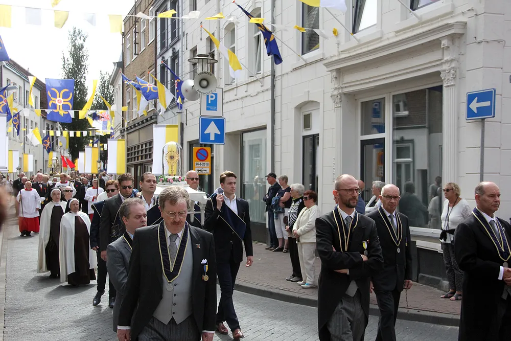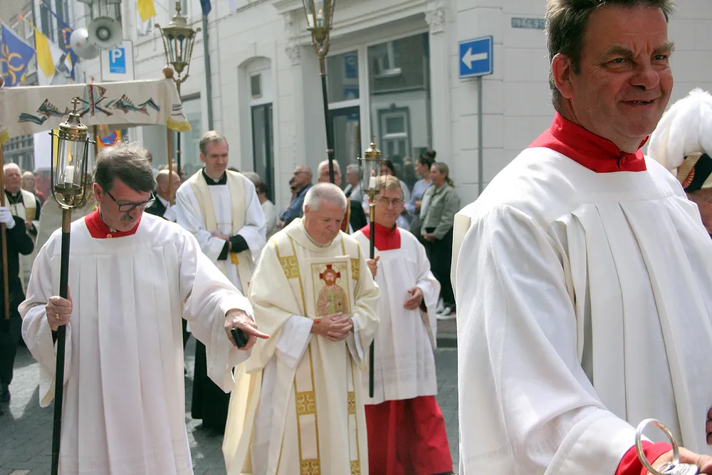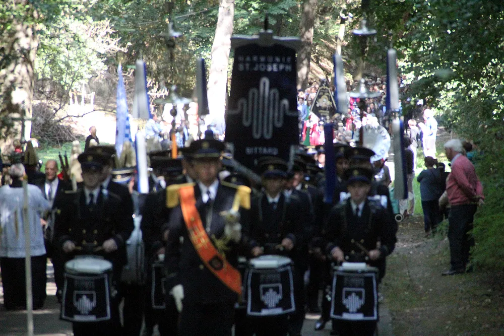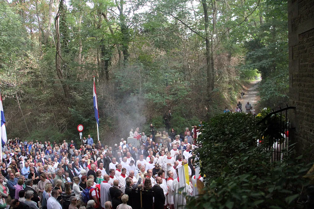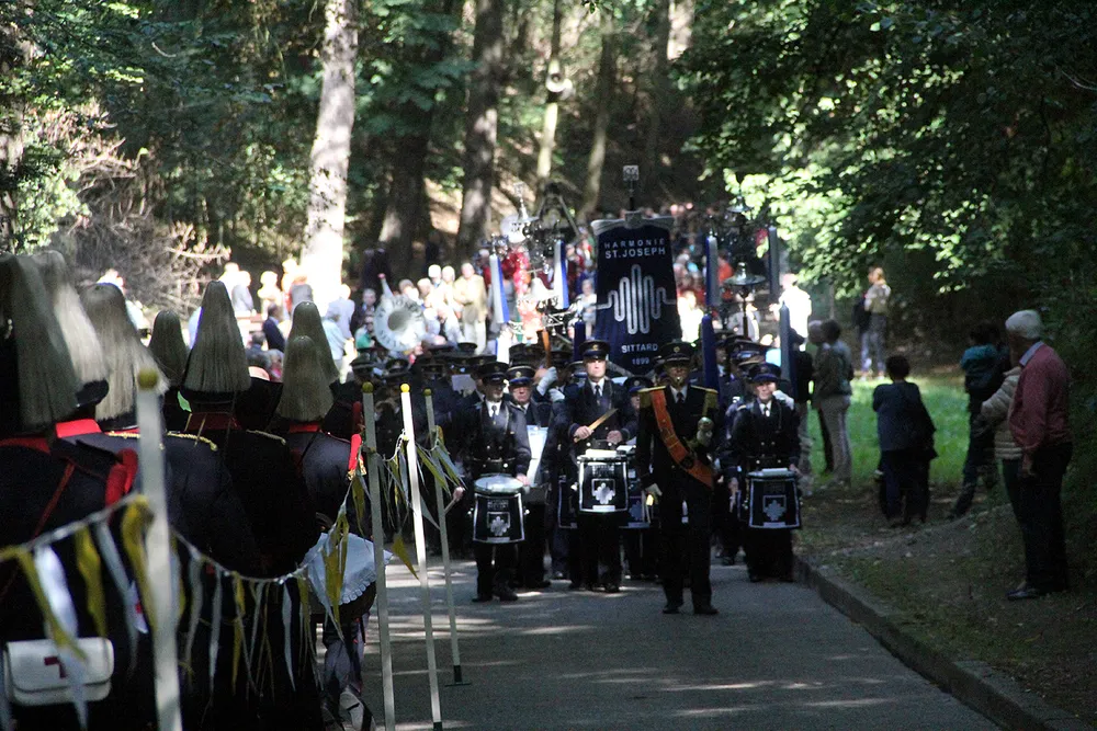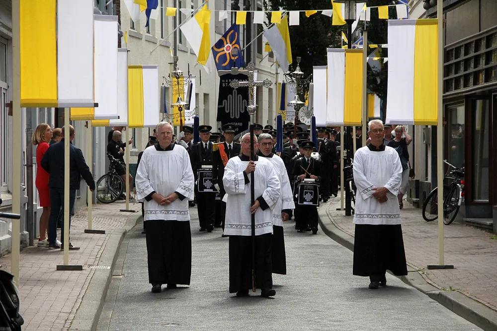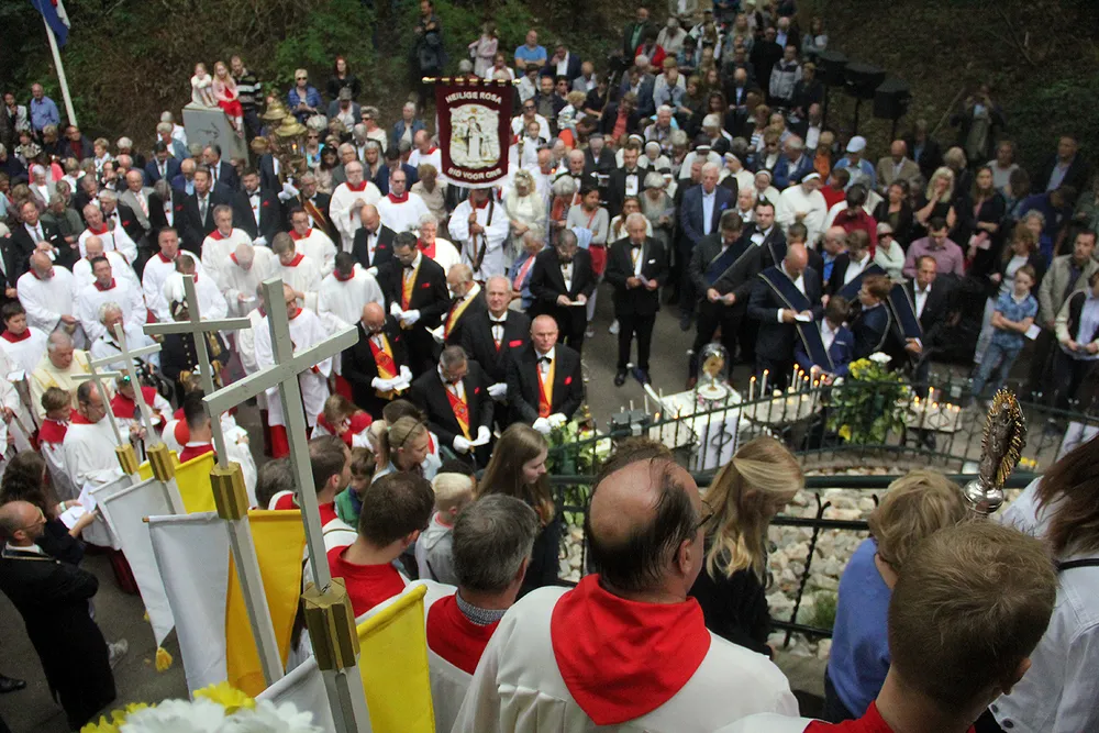 De Sint Rosaprocessie, die elke laatste zondag van de maand augustus van de Sint Michielskerk naar de Sint Rosakapel op de Kollenberg in Sittard trekt, kende vandaag weer veel belangstelling.