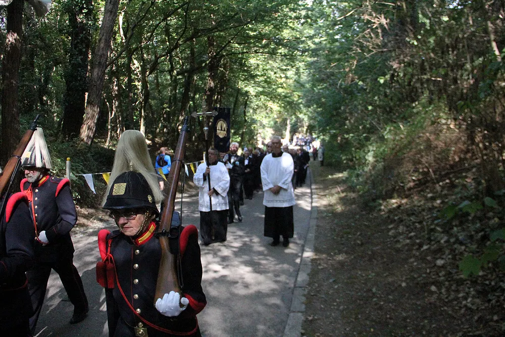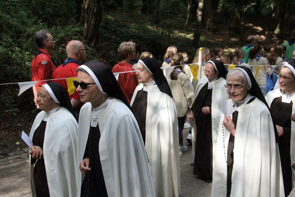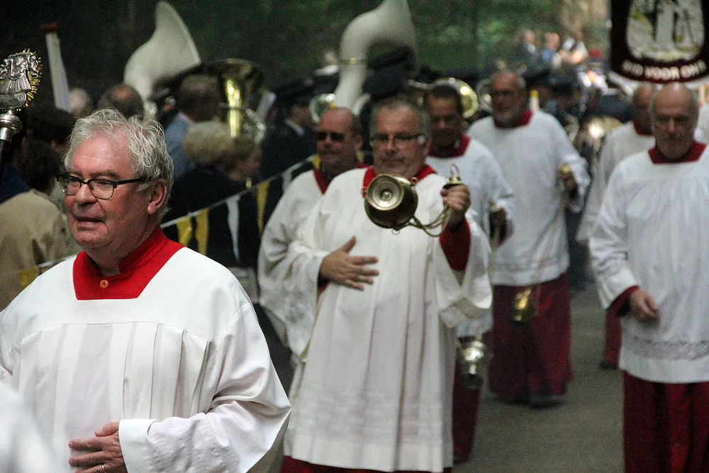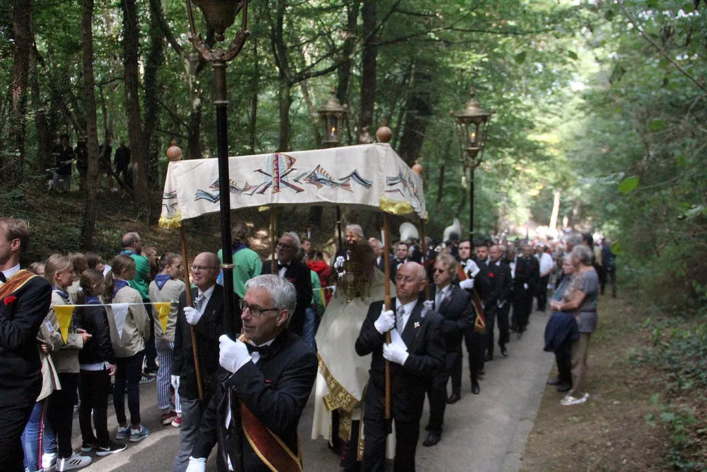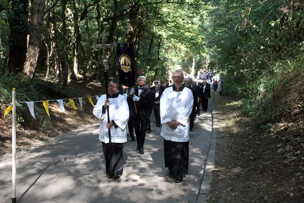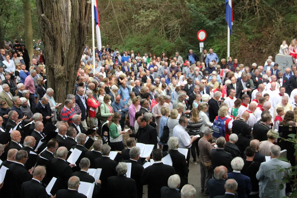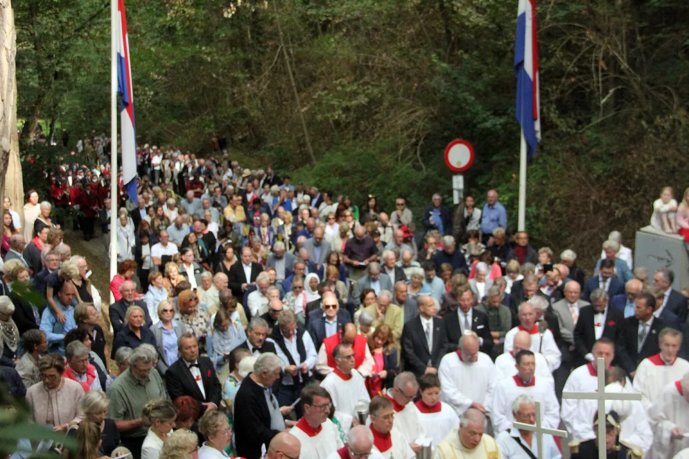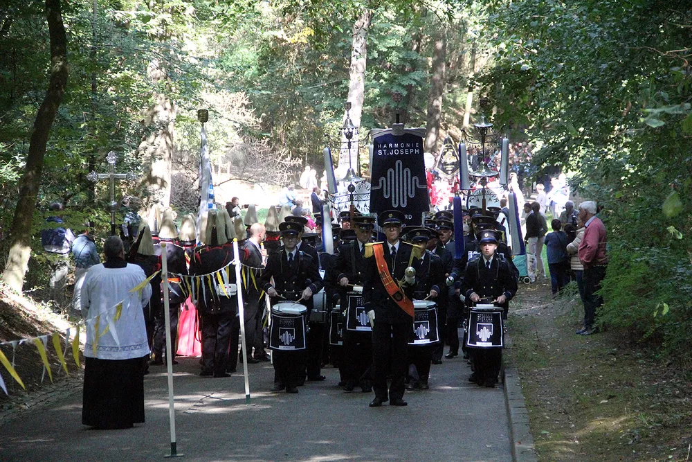 De Sint Rosaprocessie, die elke laatste zondag van de maand augustus van de Sint Michielskerk naar de Sint Rosakapel op de Kollenberg in Sittard trekt, kende vandaag weer veel belangstelling.