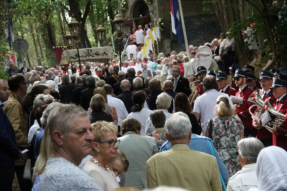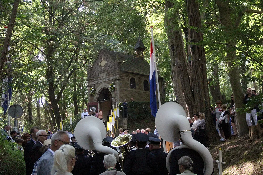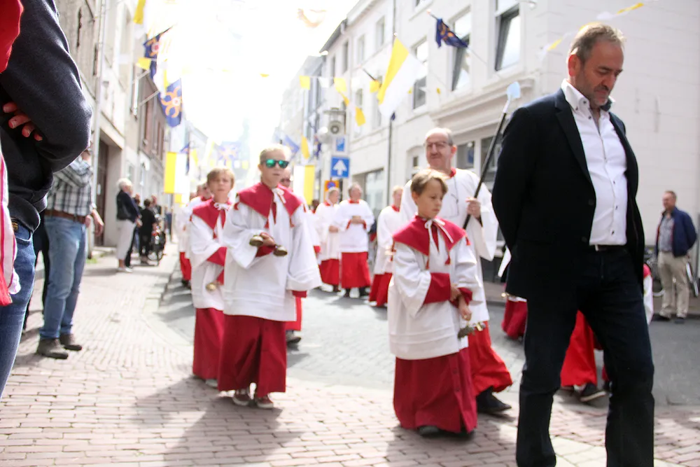 Dit jaar leken er weliswaar minder toeschouwers langs de kant van de Putstraat en de Kollenberg te staan, maar trokken veel meer mensen dan vorig jaar mee in de bidstoet naar de Sint Rosakapel. Daar zal de aangename temperatuur mede debet aan zijn geweest.