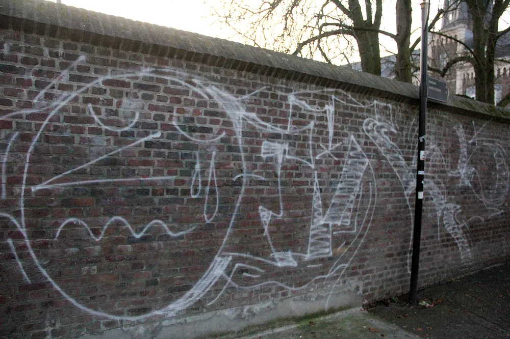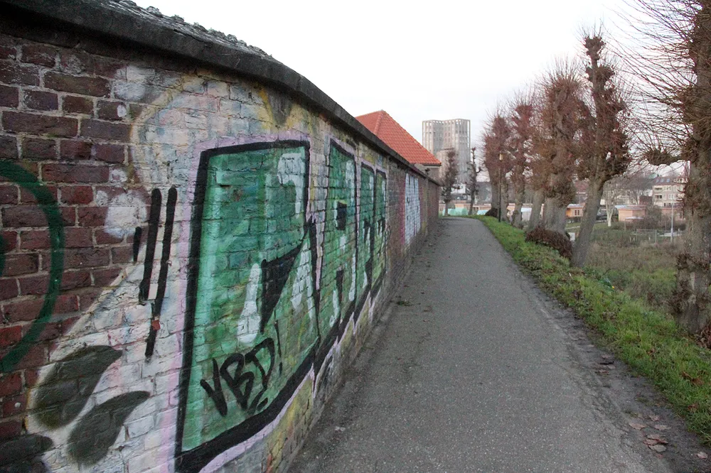 Een lezer stuurde ons bovenstaande fraaie, met tegenlicht gemaakte foto van de linden op een deel van de wal (opgang naar Fort Sanderbout op de Paardestraat). Maar als je over die fraaie stadswal loopt valt op dat diverse muren op de omwalling van het oude stadscentrum zijn beklad met foeilelijke tags, dan wel met complete even lelijke graffiti die zelfs op een Heerlense flatwand niet zal worden gewaardeerd en die beslist niet thuishoren op de oude muren op de stadswallen. Deze aanblik is de Sittardenaren en de wandelaars een doorn in het oog.