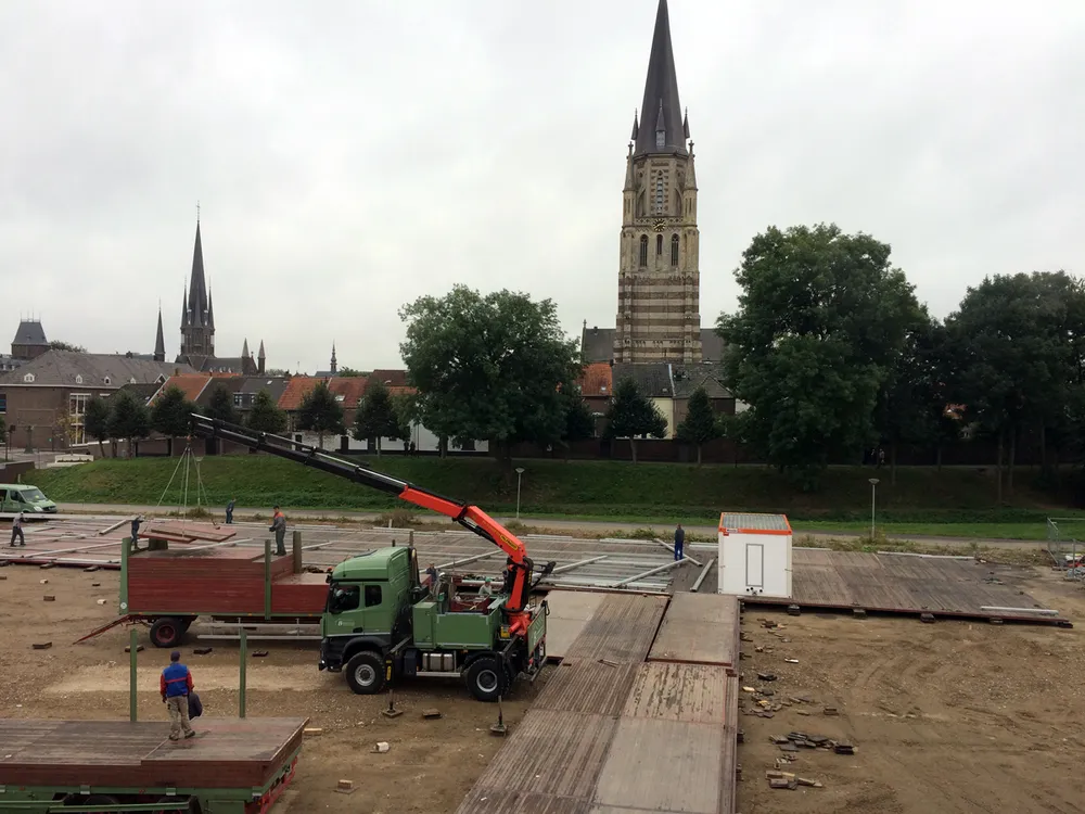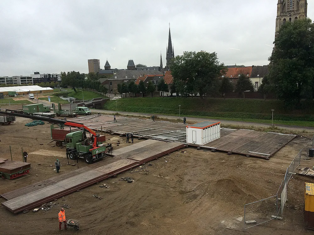 Vooral de laatste twee weken vóór het feest is het ook fysiek aanpoten geblazen. Deze week werd begonnen met het inrichten van de Wiese. Rijplaten werden gelegd, Brauhaus Brand staat al overeind, het Boels Rental paviljoen wordt opgezet tegenover Ligne en ook de drie andere paviljoens - Brand Weizen, L1-Stube en Lederhosenland zullen er binnenkort weer te vinden zijn. Daarna volgt nog het verlichten, versieren en inrichten van de tenten en het opbouwen van de kermisattracties. Vrijdag 21 oktober is dan alles feestklaar.