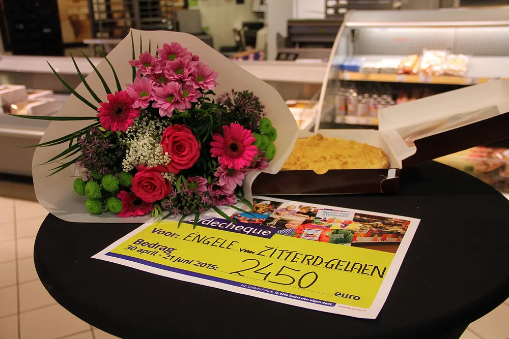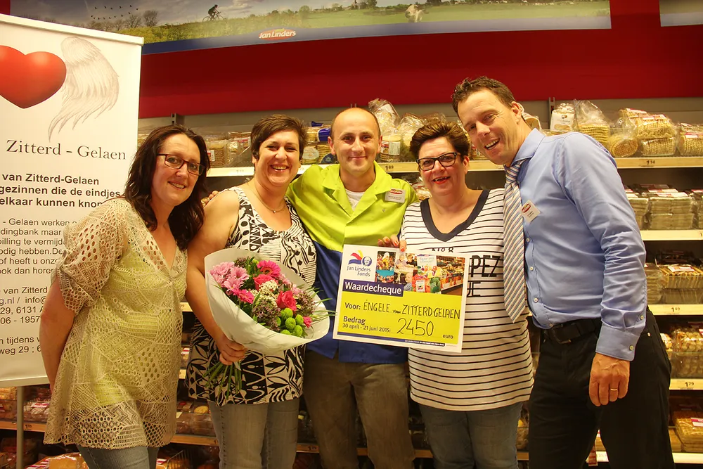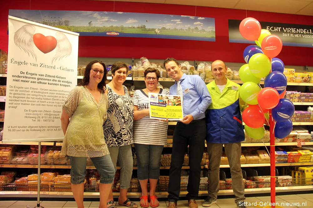 "Wij hebben een SUPER COOLE middag gehad..... bij Jan Linders Supermarkt in Zitterd !!!!! Whoehoe een donatie van €. 2.450,00. Veer waore gans van ut patje aaf. Dus.....Jan Linders Supermarkt Zitterd, Eric, Patrick, de res van ut personeel en alle klanten ..... BEDANKT!!! XXX" - de Èngele van Zitterd-Gelaen