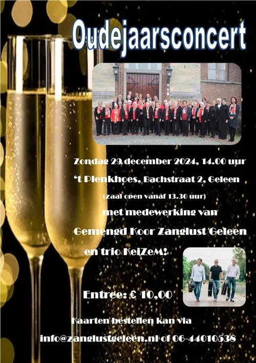 Op zondagmiddag 29 december 2024 zal het koor samen met het trio KeiZeM! vanaf 14:00 uur een concert verzorgen in ’t Plenkhoes aan de Bachstraat in Geleen-Zuid.