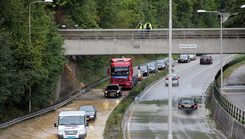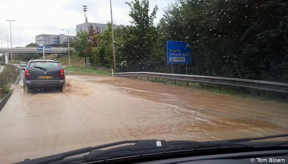 Ten gevolge van een lekkende transportleiding is er sprake van wateroverlast op de Middenweg. Ook het treinverkeer ondervindt daarvan hinder.