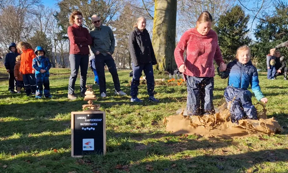Onder een stralend zonnetje waagden zowel jong als oud een dappere sprong in het modderige water. De jongste deelnemer was Nora van Den Hooyen (1), terwijl de oudste deelnemer de organisator zelf was, Michel van Dijke (52). Deelnemers kwamen niet alleen uit Geleen, maar ook uit Limbricht, Munstergeleen, Voerendaal, Jabeek, Nederweert en zelfs uit Zwaag in Noord-Holland.