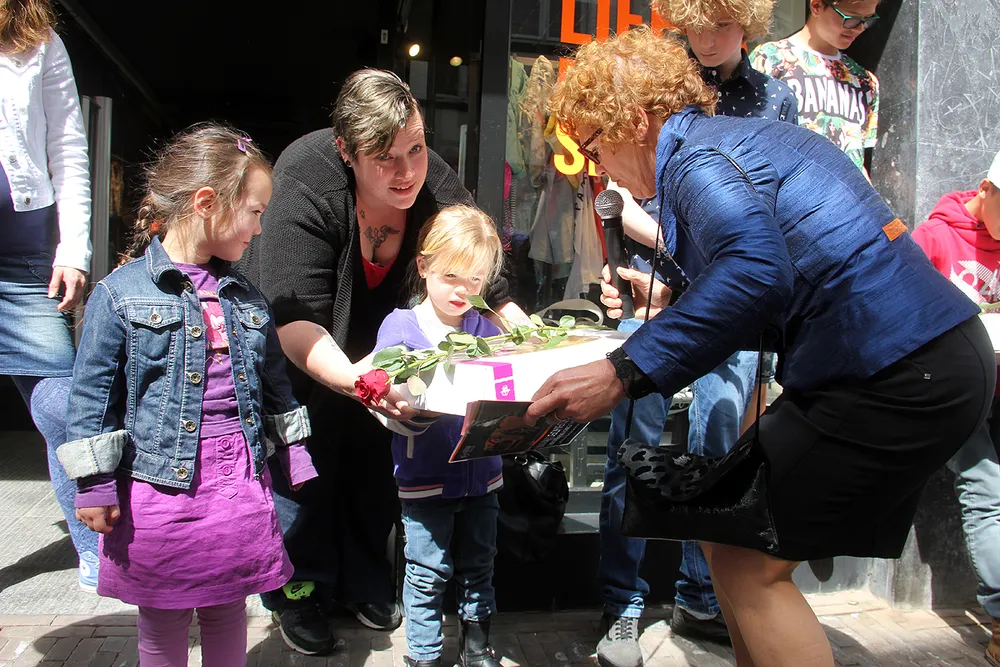 Aan burgemeestersvrouw Ria Cox kwam zaterdagmiddag de eer toe om de namen van de tien winnende moeders bekend te maken en als klap op de vuurpijl uit die tien namen een winnaar te trekken.