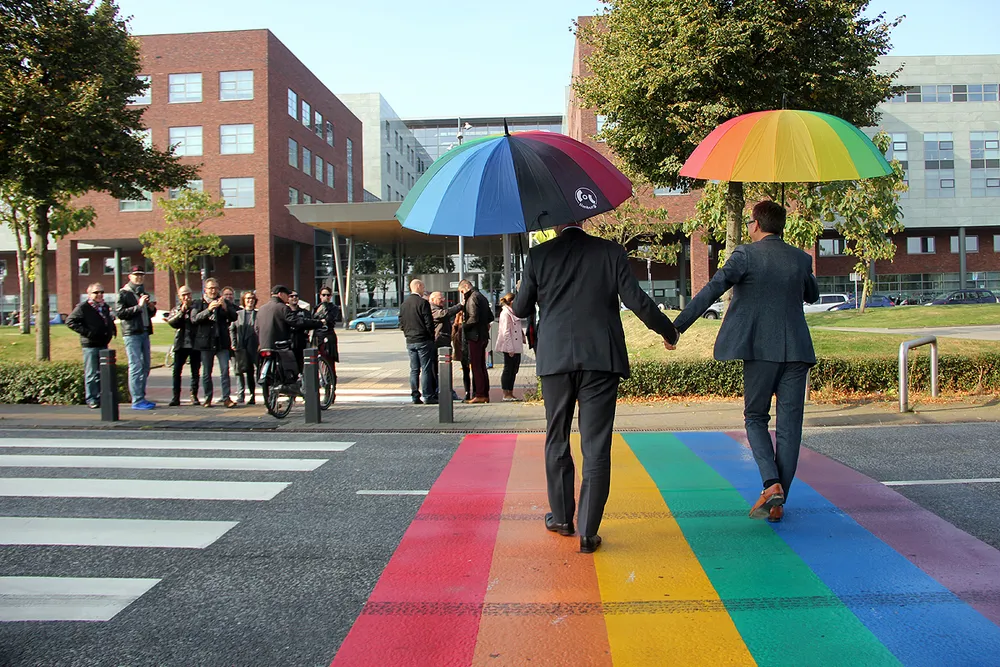 Om dit kracht bij te zetten heeft de gemeenteraad het verzoek voor de aanleg van een regenboogpad ingediend. Dit verzoek is onderzocht, vooral op aspecten van verkeersveiligheid. Het pad werd vorige week aangelegd bij de oversteekplaats bij het Zuyderland ziekenhuis, niet ter vervanging maar juist ter flankering van het bestaande zebrapad.