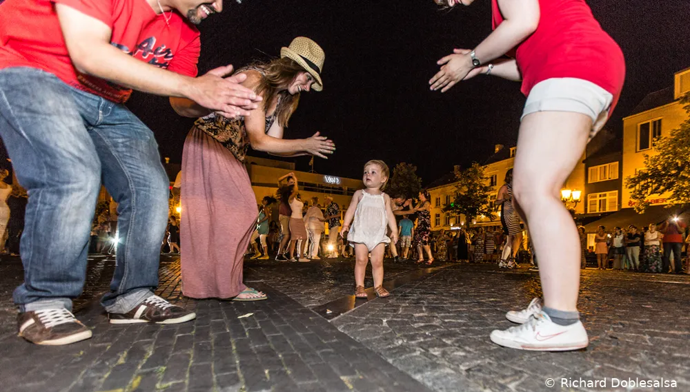 Als het derde salsanummer start worden de toeschouwers echt verrast, want vanuit alle straten, terrassen en café's stromen nog eens 130 mensen het plein op die allemaal salsa dansen: de salsa-flashmob is een feit en het publiek en de dansers genieten. Jong en oud door elkaar en alles danst!