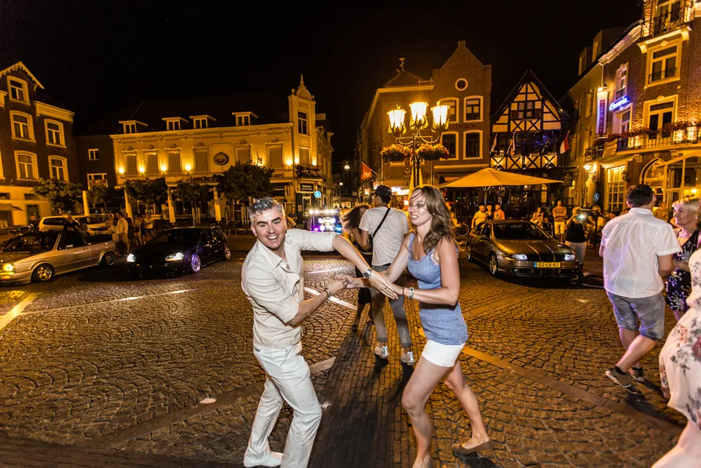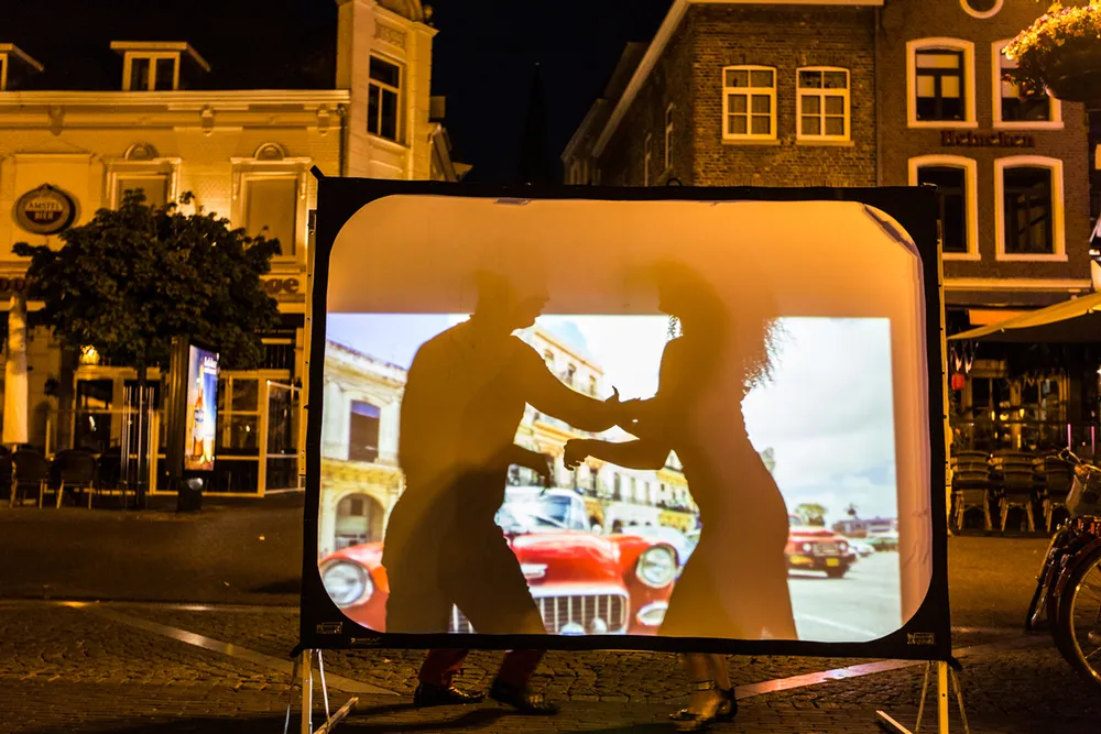 Om 23:00 uur reed een Volkswagenbusje de Markt op. Vanuit een zijstraatje komen twee mensen met een scherm aangelopen en even later klinkt salsamuziek over de Markt. Er verschijnt een dansend duo op het projectiescherm en al snel stroomt het publiek nieuwsgierig toe. Er rijden nóg een paar auto's de Markt op. In het licht van de koplampen dansen tien mensen eenzelfde choreo.