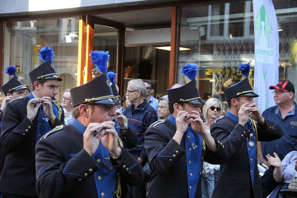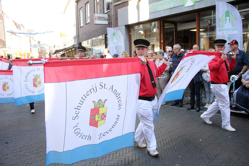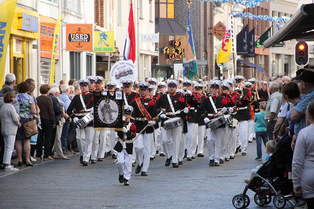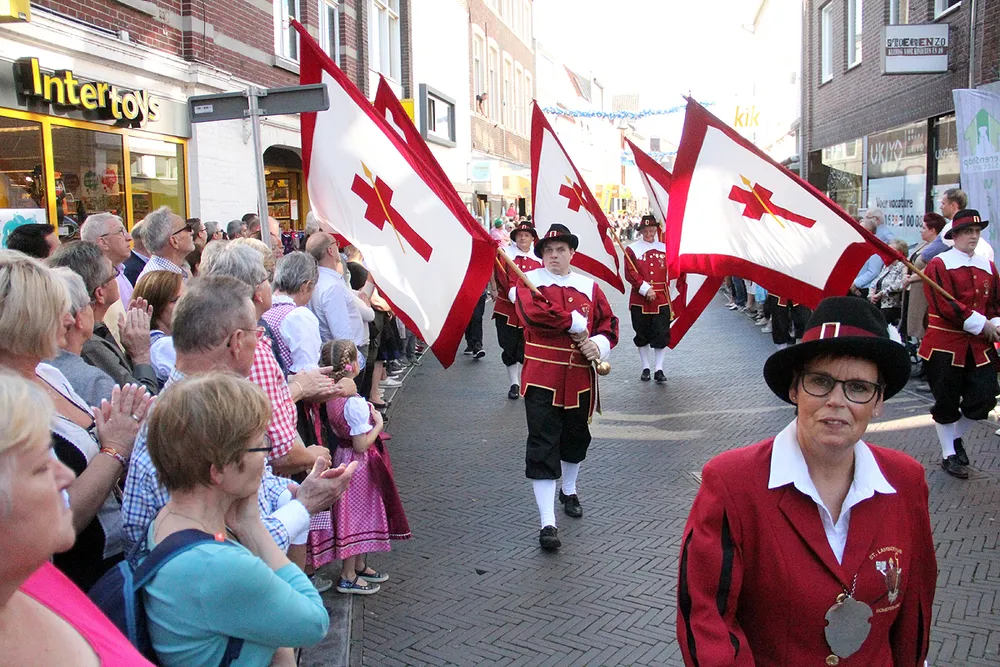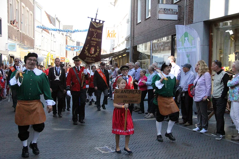 Vanwege het prachtige zomerse weer stroomden de straten van het centrum, het Oktoberfeestterrein, de feestpaviljoens en de terrassen op de Markt al vroeg vol met publiek. Het STIHL Timbersports® European Champions Trophy Qualifier, een kwalificatiewedstrijd voor het Europees Kampioenschap, had over belangstelling evenmin te klagen. Maar in eerste instantie ging de aandacht uit naar de fraaie stoet met 35 deelnemende schutterijen en gilden uit Nederland, België en Duitsland, die ruim een uur lang door de straten van het centrum trok.