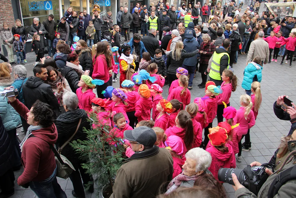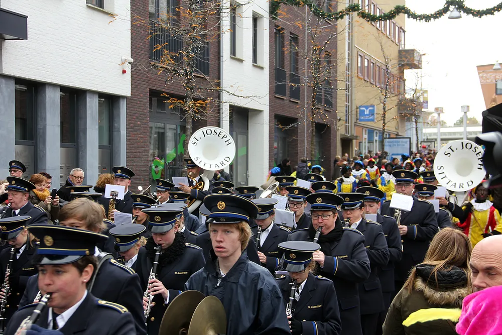 Het was de 86e keer dat harmonie Sint Joseph - voorafgegaan door majorette- en dansgroep Elisabeth - de Goedheiligman op zijn eretocht door de winkelstraten van de stad begeleidde. De Sint werd verder vergezeld door een grote groep Paek-zwarte Pieten, die volop snoepgoed en pepernoten uitdeelden. Onderweg naar de Markt werd diverse keren halt gehouden. Op de halteplekken werd de Sint verrast met leuke optredens van Jazz Dance Limbricht, Maaslandster Zuid-Limburg, de Drumband van Pergamijn, de klarinettisten van het leerlingenorkest van de St. Joep-harmonie en kinderen van basisschool Loedoes. Volgend jaar is SBO Het Mozaïek aan de beurt om een optreden voor de Sint te verzorgen. De intocht eindigde op de Mark, waar de Sint natuurlijk nog werd toegezongen.