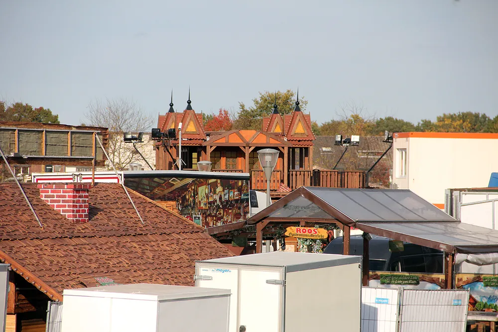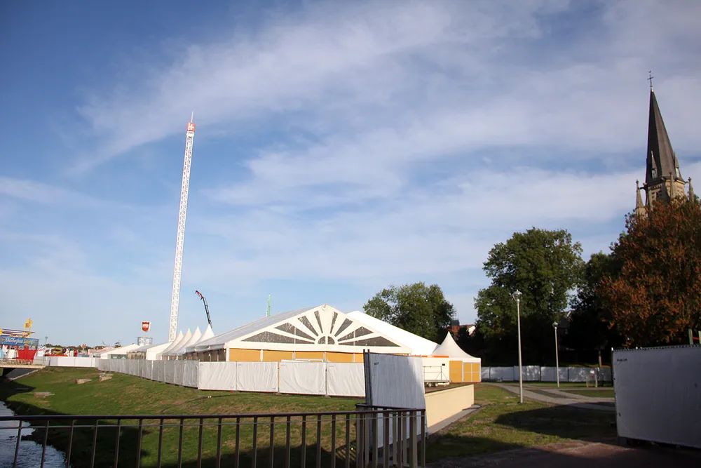 Voordat de kermis kan gaan draaien en de feestpaviljoens open gaan wordt en natuurlijk het nodige werk verzet. Drie van de vier feestpaviljoens staan al op de schootsvelden en worden momenteel ingericht en ook diverse kermisattracties zijn al opgebouwd. Een bijzondere trekker dit jaar is de 80 meter hoge zweefmolen Around the World. Die stond eerder ook al eens op de Oktoberfeestkermis, maar ditmaal is hij nog eens 20 meter hoger. Op die hoogte heb je dan ook een fenomenaal uitzicht,