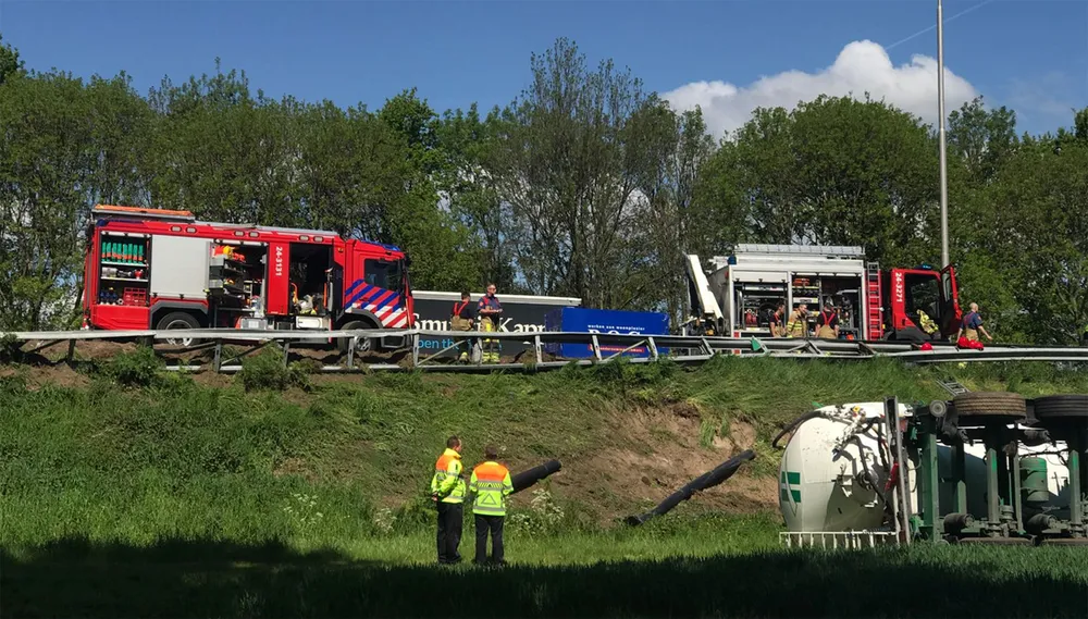 Het ongeval gebeurde rond 10:45 uur, de oorzaak wordt onderzocht. De chauffeur moest door de brandweer uit het gekantelde voertuig worden bevrijd. Voorzover bekend bevatte de tankwagen geen gevaarlijke stof.