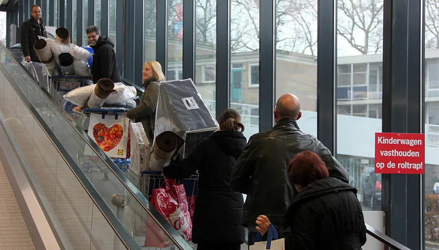 De toeloop was woensdag enorm. Urenlang stonden er - met alle kassa's bemand - rijen met klanten tot achterin de winkel hun beurt af te wachten om te betalen. Eer was geen winkelkarretje meer vrij. Het parkeerdek en het parkeerterrein stonden vol en dat gold ook voor de parkeerplaatsen in de Annastraat en voor het gemeentehuis. De gemeente had voor de gelegenheid besloten woensdag in het centrum van Geleen gratis parkeren in te stellen.