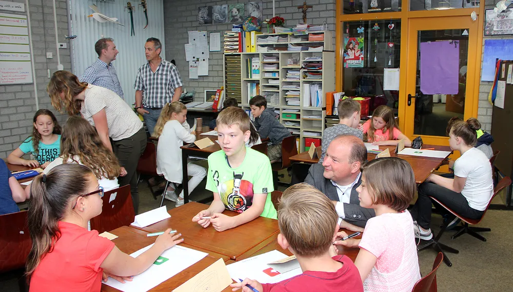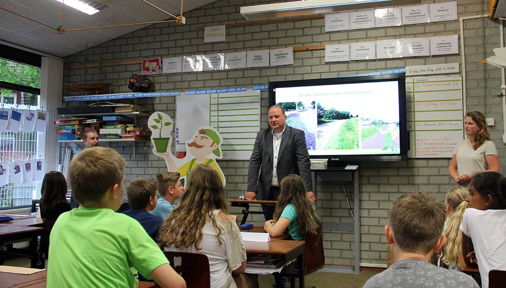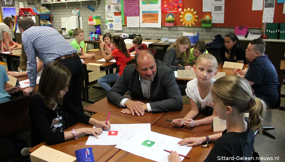Om ook de mening van de jongste groep gebruikers van de openbare ruimte te horen legt De Tuinman van Sittard-Geleen bezoekjes af aan een aantal basisscholen in de gemeente. Maandagochtend was hij samen met wethouder Leon Geilen te gast in basisschool De Driesprong in Geleen.