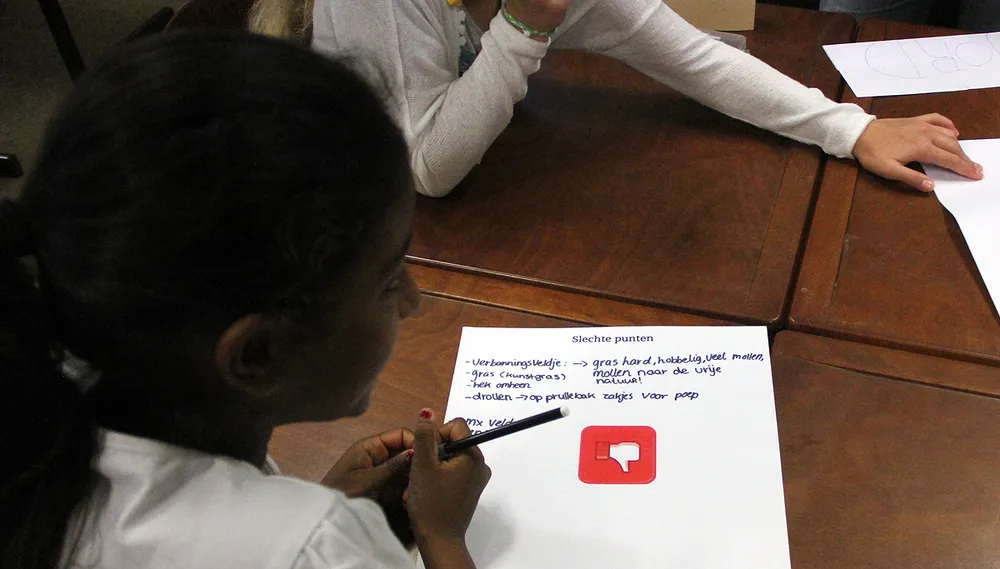 Daar kregen leerlingen uitleg over het begrip openbare ruimte. Op een speelse manier werden ze ertoe aangezet om eens na te denken over de openbare ruimte om hen heen en hoe zij die het liefste zouden willen zien ingevuld. Moet het fietspad recht of juist bochtig zijn? Staan er genoeg afvalbakken? Moeten de plantsoenen strak gemaaid worden of juist niet? Is er voldoende speelgelegenheid en is het in de omgeving aantrekkelijk om buiten te spelen?