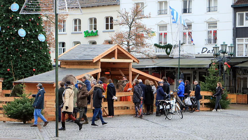 Het is bij de levende kerststal op de Markt in Sittard al de hele middag een komen en gaan van ouders en kinderen, al dan niet samen met oma en opa.