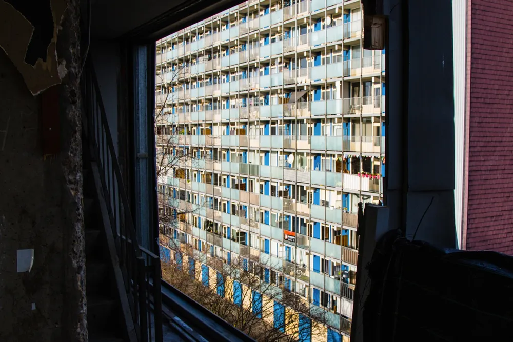 Een keukenraam in flat 3 aan de Eisenhowerstraat in Sittard, de flat die momenteel wordt gestript en ergens in februari komend jaar wordt gesloopt.