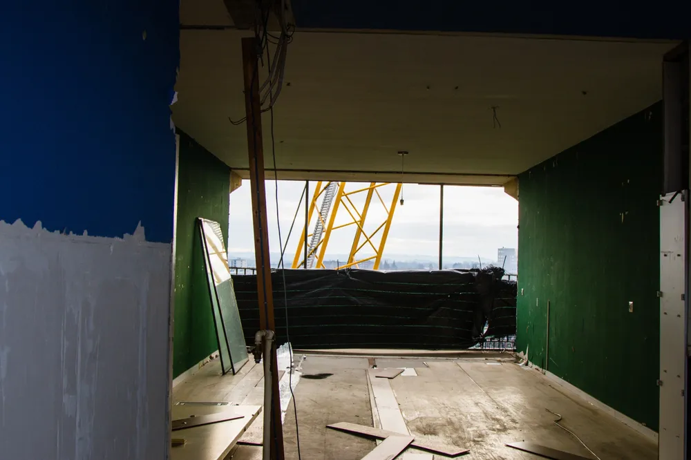 Bjorn de Hoog, zelf woonachtig in het Sittardse Limbrichterveld, mocht foto’s maken in het gebouw dat nu door de firma M. Heezen slooprijp wordt gemaakt.