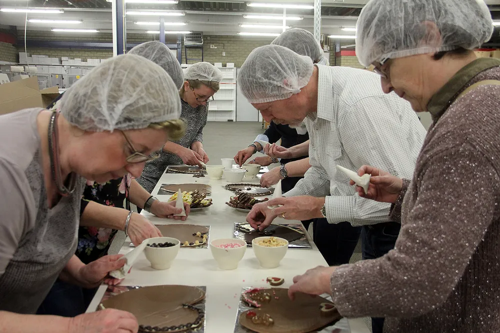 De creativiteit werd uitgedaagd, de dansvaardigheid getest en de smaakpapillen werden gestreeld. En wie had gekozen voor een rondleiding bij Chocolatier Rousseau moet zich even Sjakie in de Chocoladefabriek hebben gewaand. De geur in dat bedrijf alleen al is voor de pure liefhebber gekmakend.
