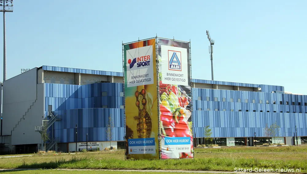 Op een braakliggend terrein aan de Lissabonlaan tussen het Fortuna Sittard stadion en de brandweerkazerne verscheen onlangs een stellage met de boodschap dat Intersport zich daar binnenkort gaat vestigen.