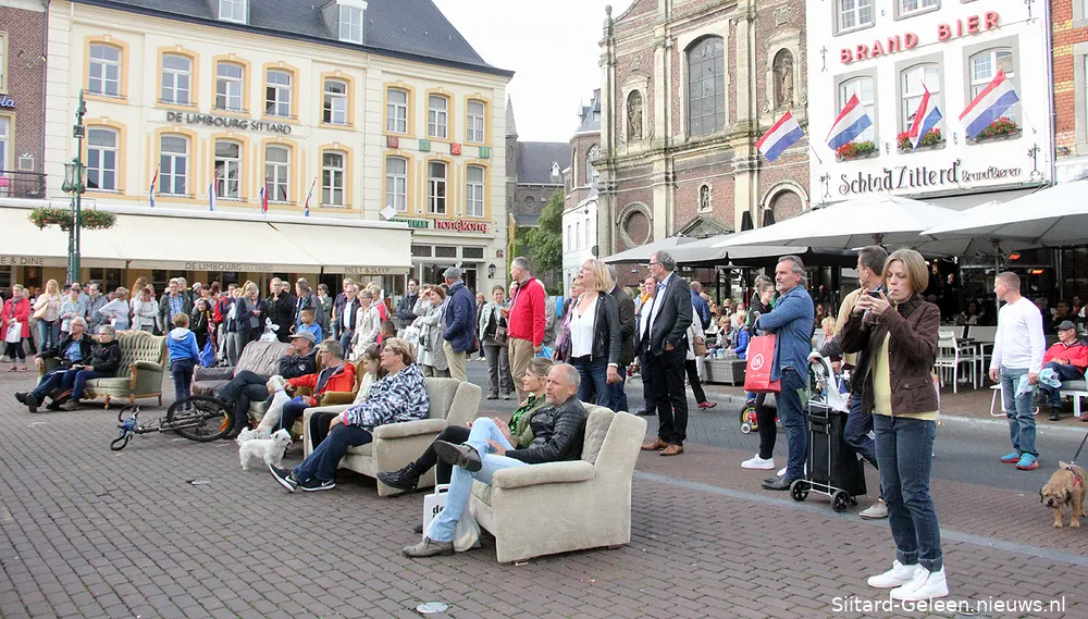 Met de uitnodigende titel 'Kom bij ons op de bank' nodigde cultuurbedrijf De Domijnen iedereen uit om in het centrum van Sittard kennis te komen maken met een aantal culturele voorproefjes.