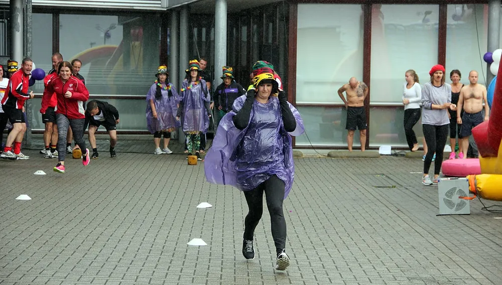 Ook de dit jaar voor de tweede keer georganiseerde Highland Games van Anytime Fitness aan de Stockholmstraat in Sittard hadden beter weer verdiend. Tijdens de Highland Games gingen diverse teams, samengesteld uit leden van Anytime Fitness, op diverse onderdelen de strijd met elkaar aan. Dat het regende was weliswaar minder leuk, maar dat deerde eigenlijk geen mens. Een nat pak haalden de deelnemers sowieso: er waren twee hindernisbanen waar de sporters de plomp in moesten