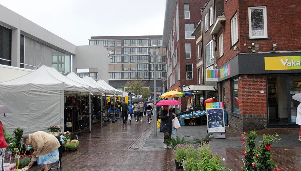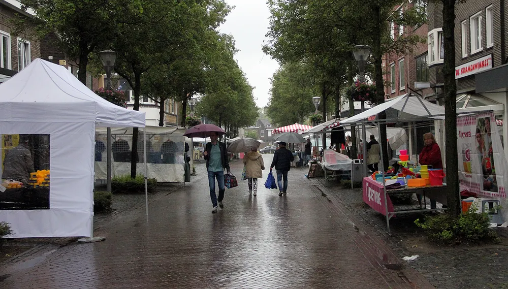 In Geleen had de derde editie van de jaarmarkt te kampen met het slechte weer. Een jaarmarkt afgelasten doe je niet zo snel, alleen bij extreme weersomstandigheden die gevaar kunnen opleveren voor de bezoekers en marktkramers, zoals vorig jaar op Tweede Paasdag. Toen werd in Born vanwege de harde wind de Paasmarkt afgelast. Van een onveilige situatie was vandaag geen sprake, wel van een erg natte. Een aantal marktkramers had daarom maar besloten thuis te blijven, dus er bleven de nodige kramen leeg. De markt werd door de regen aanmerkelijk minder goed bezocht dan tijdens de eerste twee edities.
