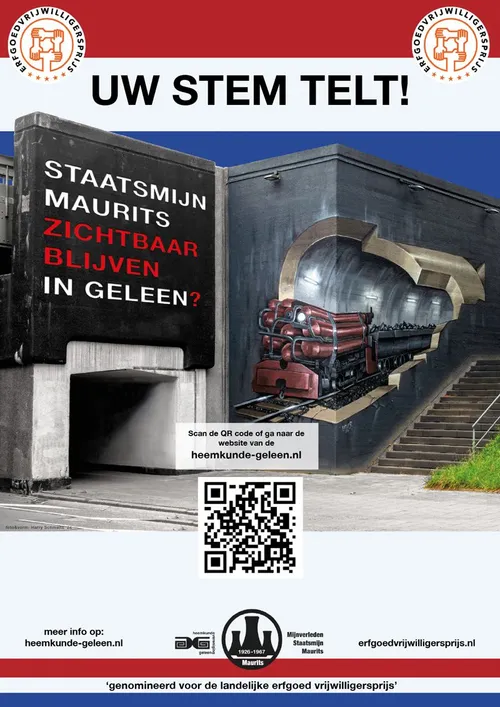 De Werkgroep ‘Mijnverleden Staatsmijn Maurits’ van Heemkundevereniging Geleen is dit jaar hiervoor namens de provincie Limburg genomineerd.