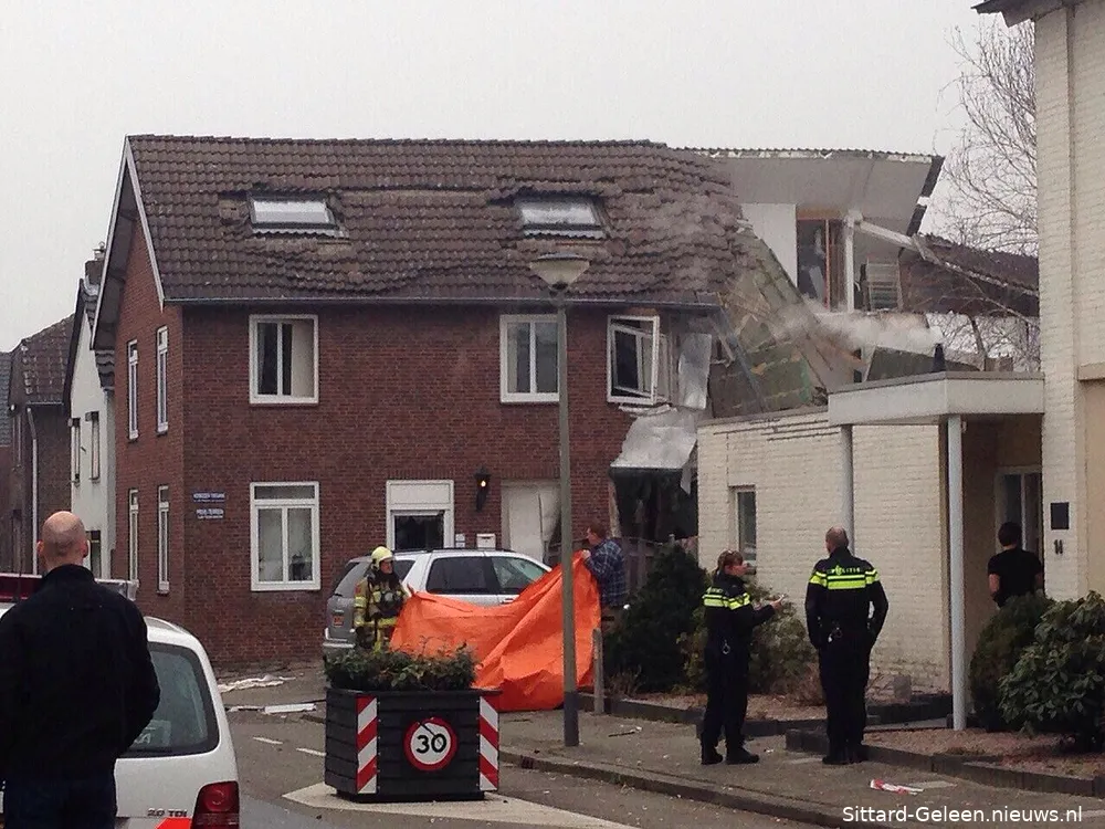 De woning raakte door de explosie zwaar beschadigd. In de omgeving zijn ruiten gesneuveld.