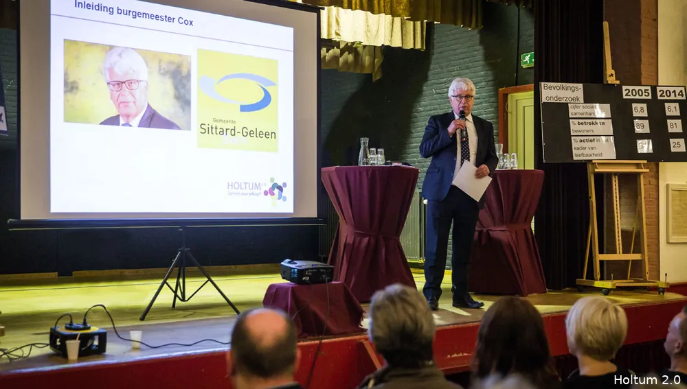 Aan het begin van de avond sprak burgemeester Sjraar Cox, zelf afkomstig uit een dorpje, bevlogen over de veranderingen die zich de afgelopen decennia in de dorpen en de maatschappij hebben voltrokken. Om de afnemende vitaliteit van de kernen te kunnen keren is een andere functie en rol van overheden en gemeenten vereist. Burgers weten zelf het beste wat nodig is en nemen graag zelf meer initiatief. De taak van de overheden is vooral om dit te stimuleren, te ondersteunen en waar nodig te faciliteren. De Gemeente Sittard-Geleen is zich hiervan bewust en staat hier ook voor open.