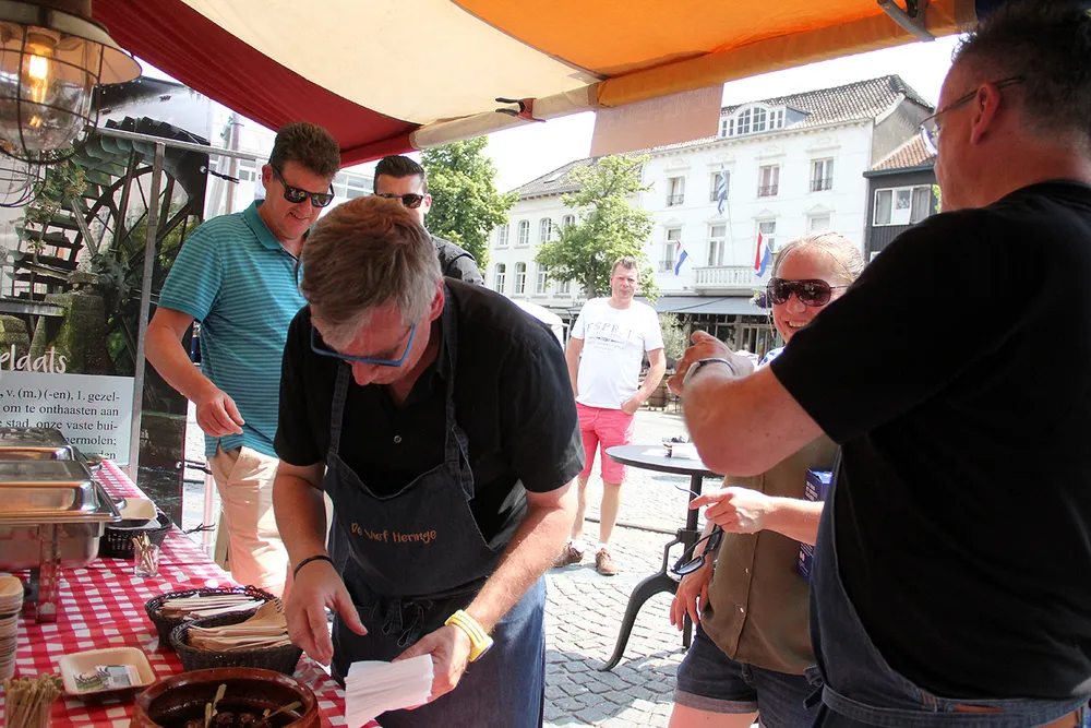 Tijdens dit ontspannen en gezellige culinaire evenement presenteerden diverse Sittardse horecazaken zich met een aantal lekkere kleine gerechten en drankjes. Verder was er voor de vaders - het was per slot van rekening Vaderdag - behalve het nodige te proeven ook een uitdagende BBQ-wedstrijd. De winnaar won - u raadt het al - een BBQ. Dit jaar ging Arjan Lamers met de titel BBQ-koning van Sittard strijken.