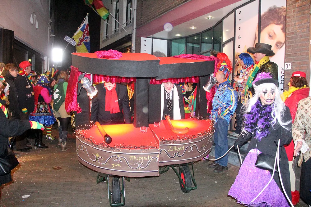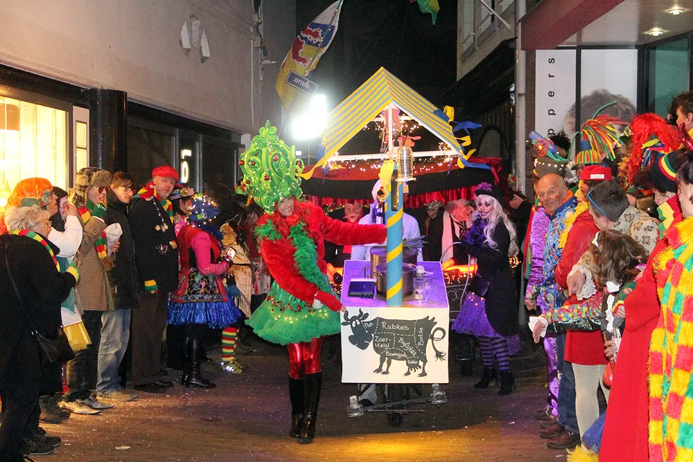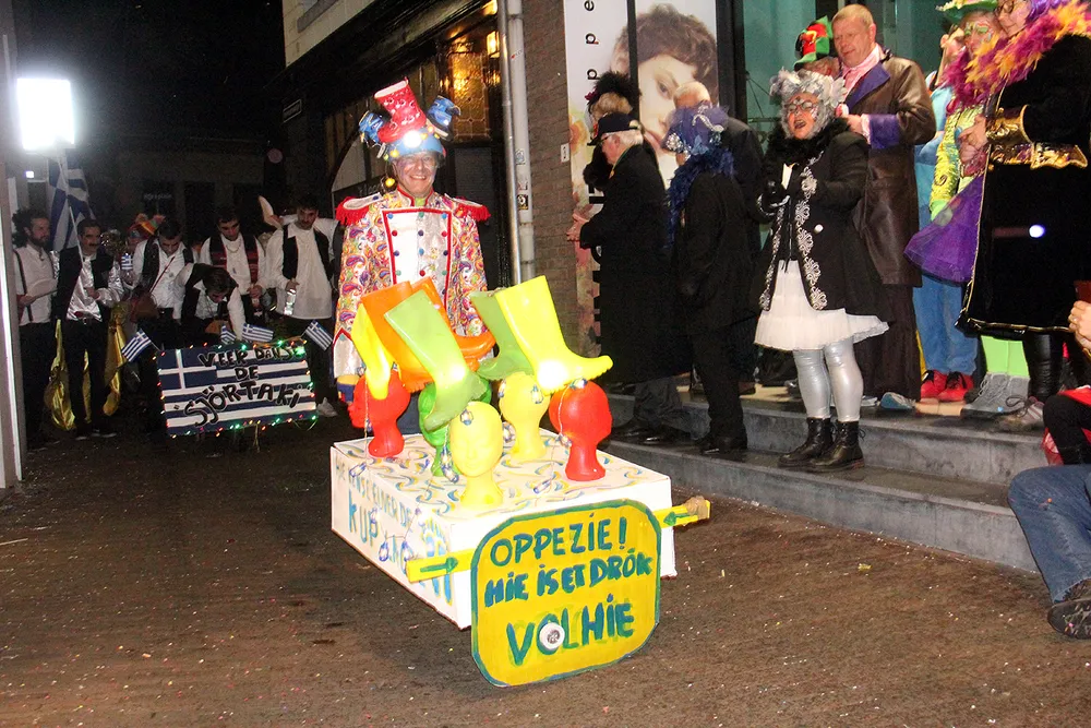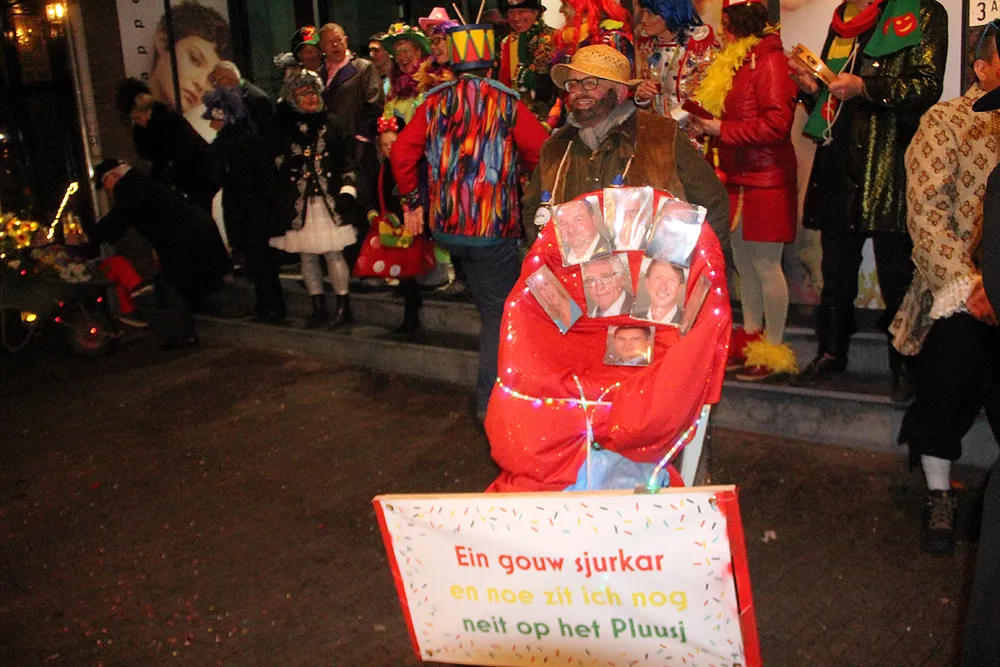 De deelnemers vermaakten zich prima en het publiek genoot mee. Wellicht is deze allereerste kruiwagenstoet, die werd georganiseerd bij gelegenheid van het 5x11-jarig bestaan van het Optoch Kommitee Zitterd, het begin van een nieuwe traditie.