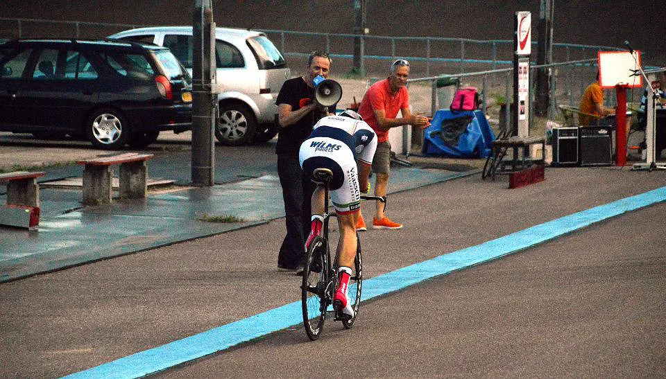 Een mooie zet van Wielerbaan Geleen: het instellen van een uurrecord. Wie legt in zestig minuten de grootste afstand af, dat is de vraag.