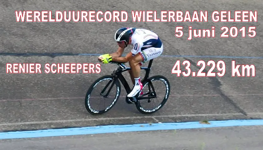 Jongstleden vrijdag 5 juni heeft Renier Scheepers (35) uit Herten het eerste uurrecord van wielerbaan Geleen op 43 km en 229 meter gesteld. Die afstand staat er nu als uitdaging aan iedereen! Hoe lang blijft die afstand staan als record?